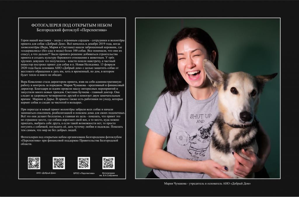 В 2021 году проек стал победителем регионального конкурса на предоставление субсидий из бюджета Белгородской области. Его цель - посредством фотографии привлечь внимание к работе НКО, рассказать о жизни белгородцев и реализуемых социально значимых проектах. Будет организовано три выставки: "Добрый дом" (приют для собак), "Синяя птица" (занимается помощью детям с аутизмом и их семьям) и БРОО «Святое Белогорье против детского рака» (оказывает помощь детям с онкологическими и гематологическими заболеваниями).